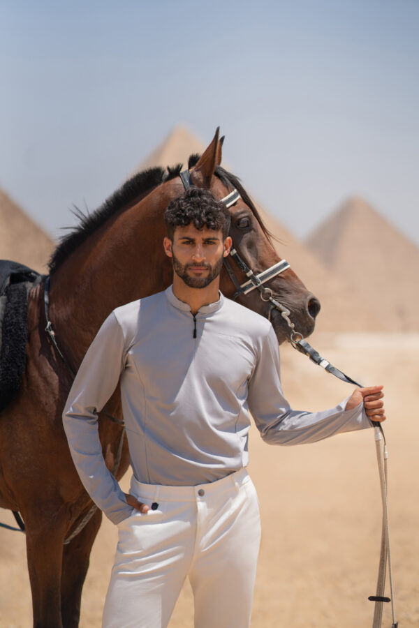 Our tops are thoughtfully crafted to offer both style and functionality. We understand the importance of choosing versatile and comfortable tops that can withstand the demands of riding while looking fashionable. Our tops are made with moisture-wicking fabrics, providing breathability and flexibility, allowing riders to maintain a professional and polished appearance both on and off their horses.